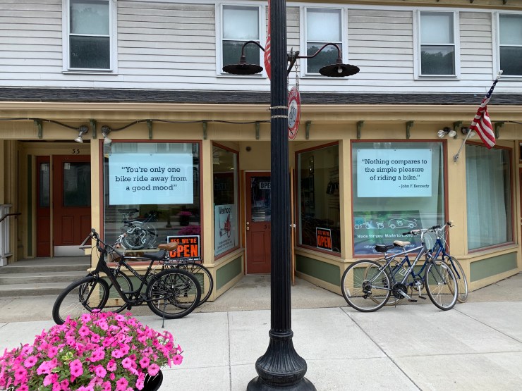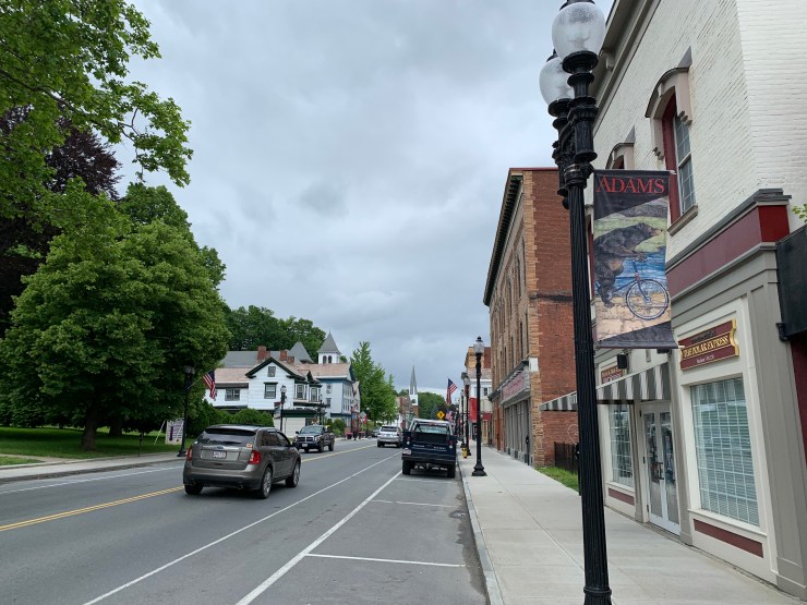 I stopped off in Adams Ma, which seems to have a big bicycle theme going on. I’ll have to look into why that is. It is also the birthplace of Susan B Anthony, which I have a suspicion may in fact be the connection as I remember her viewing bicycle us as important to women’s emancipation. There is a very nice rail trail which I am not actually taking, that runs through the town and I got to eat lunch in Trailside patio and restaurant. This is an especially good thing because the one thing I forgot at home was the key to the lock on my bike! I’m having that sent a couple days in front of me so I won’t be able to get the lock off my bike.