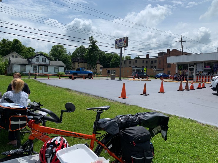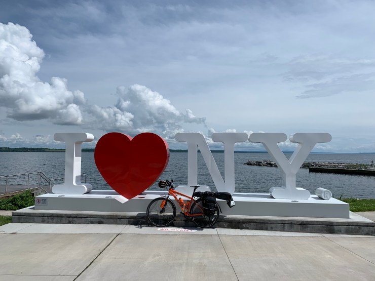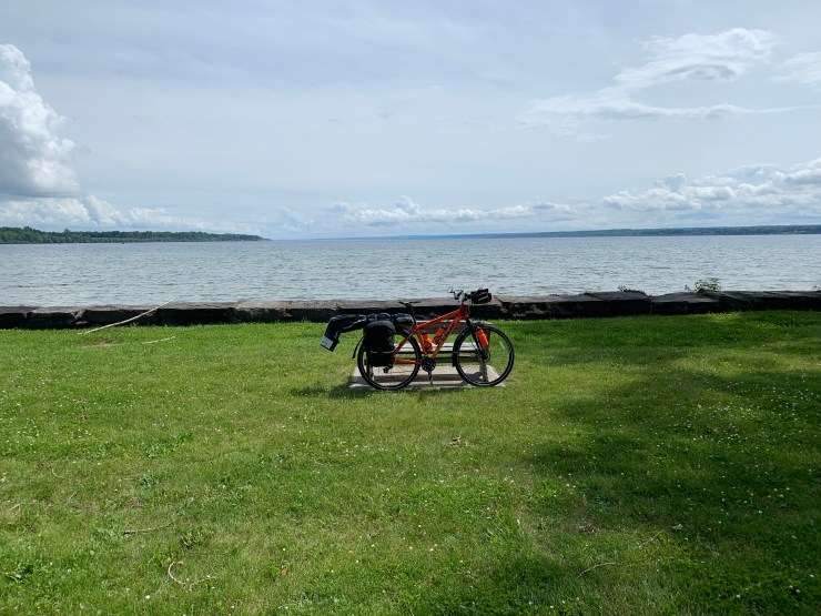So tomorrow is my first rest day of the trip. My brother Ethan had arranged storage of my bike in the office of a person who is a neighbor of his in Ithaca. I met Ben in his space at the picturesque Hobart and William Smith Colleges in Geneva, NY. He was so accommodating and kind allowing me to stash my bike in his place. However, when we left the building I noticed that my bags, that I had just briefly left outside as we conversed, were gone! It was quite a mystery to us both but he had the presence of mind of calling campus security. They had scooped up the bags almost immediately. Those boys in blue at the college are really on top of their game. They are campus security ninjas! Afterwards he brought me to the quaint downtown at Geneva and even bought me a beer. What a guy! He also offered some ideas about trails going through where he went to college, La Crosse, Wisconsin. Can’t wait to get there; it sounds beautiful.