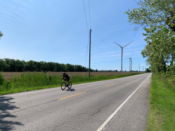 Every day seems to bring different challenges and opportunities. After saying goodbye to Ginette, my wonderful and generous host for the night, I set off for what I thought would be a moderate day of riding under clear blue skies. I knew the distance would be on the upper end of my range and I anticipated a little bit of wind along the lake, but it ended up being one of those surprisingly challenging days. After about 8 km (woo kilometers, how international) I reach down for water bottle as I felt a pang of thirst. It was then that I realized I left them back at the house and turned around to return with my brakes still shrieking like a madman in the loony bin. In every town people would look up and see who was coming because of the noise. The scenery was quite beautiful, flat and green with lots of farms either side of the bike path. But the head wind coming due west into my face was absolutely no joke, especially as the day wore on. fully loaded with bags you’re like a sail. It was relentless and exhausting while the temperatures rose. Essentially I hardly got off my bike from 830 until 4 PM. I didn’t even have lunch except for a ton of bars as I ground it out.