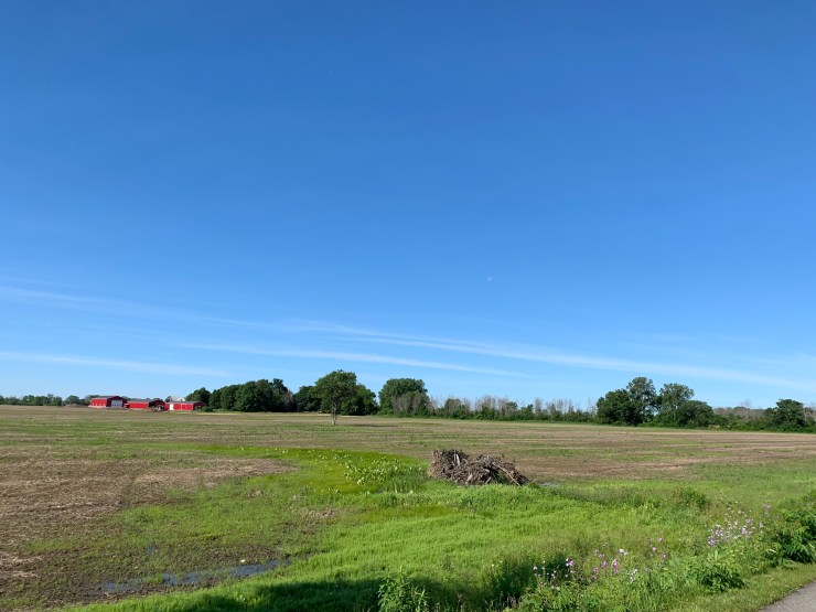 Every day seems to bring different challenges and opportunities. After saying goodbye to Ginette, my wonderful and generous host for the night, I set off for what I thought would be a moderate day of riding under clear blue skies. I knew the distance would be on the upper end of my range and I anticipated a little bit of wind along the lake, but it ended up being one of those surprisingly challenging days. After about 8 km (woo kilometers, how international) I reach down for water bottle as I felt a pang of thirst. It was then that I realized I left them back at the house and turned around to return with my brakes still shrieking like a madman in the loony bin. In every town people would look up and see who was coming because of the noise. The scenery was quite beautiful, flat and green with lots of farms either side of the bike path. But the head wind coming due west into my face was absolutely no joke, especially as the day wore on. fully loaded with bags you’re like a sail. It was relentless and exhausting while the temperatures rose. Essentially I hardly got off my bike from 830 until 4 PM. I didn’t even have lunch except for a ton of bars as I ground it out.