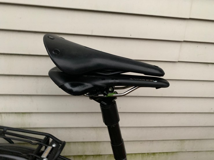 However, my most anticipated item was a new saddle. I really needed another one as I had stolen the one I am riding from my road bike. The saddle I bought is really the “right one” that most touring cyclist used. It has more points of contact and thus creates fewer bummers. Most people are surprised to learn that saddles for long distance biking generally are not soft at all in the traditional sense. This saddle has no cushioning to speak of, but rather it has the right shape and is flexible, which is better in the long run then soft. Time will tell, but I took some Care today to really dial in the ergonomics on my bike. Geez, it has only taken me to 3/4 of the way through the ride to get things right. If the public demand is great enough I could give a rear end update.
