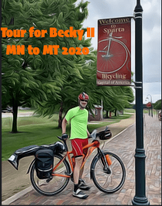 First off, thanks for taking the time to read this update message. I sincerely hope that you have come through this ‘historic’ year well, or at least as well as can be expected given the great challenges. It is now almost two years on from the original Tour for Becky, a 1600 mile solo ride from Westborough, MA to St. Cloud, MN that raised over $8,000 for a couple of great organizations in honor of the memory of my mother-in-law, Becky Lekberg, who passed away after a long battle with breast cancer. Last spring I was all set to hit publish on the announcement of Tour for Becky II when the pandemic started closing down the country and putting a lot of our collective plans on hold. Now that there seems to be light at the end of the tunnel, I am preparing a slightly scaled down 1,000 mile solo ride from Minnesota to Montana (yes that means there will be a third ride in the future to make it to the Pacific.) With a recent vaccination and a restless spirit I do believe it is time to get out on that road again.